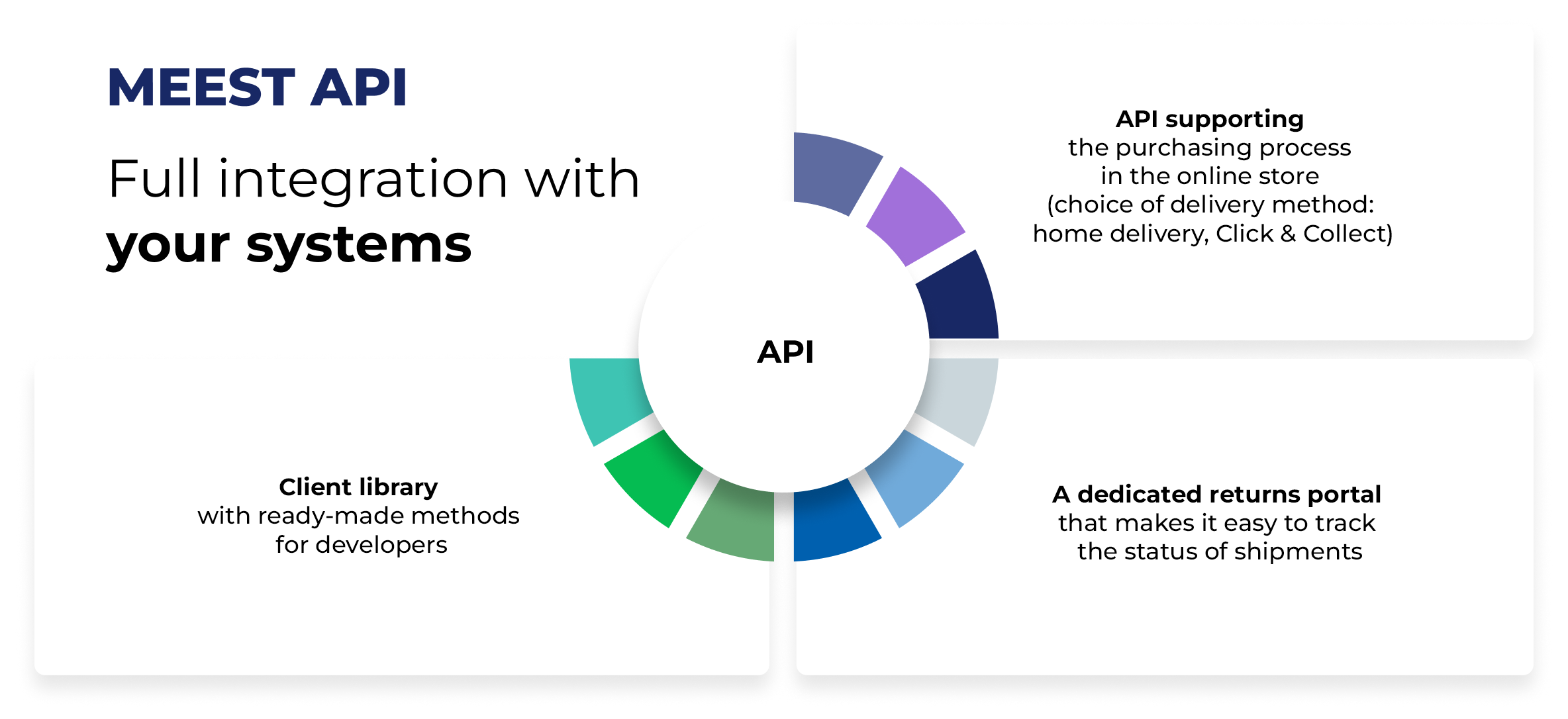 Simple API integration allows you to connect your system to our services immediately after registering a Meest account and start shipping parcels.